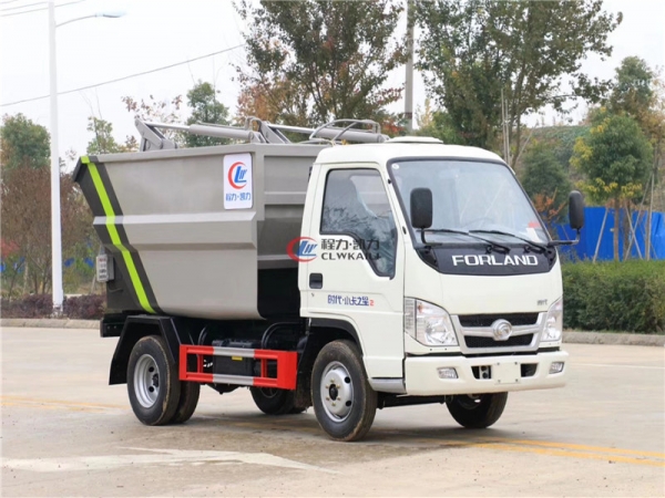 3.1到達垃圾站,伸出支腿,傾翻垃圾箱,打開滑板及刮板,傾倒垃圾。