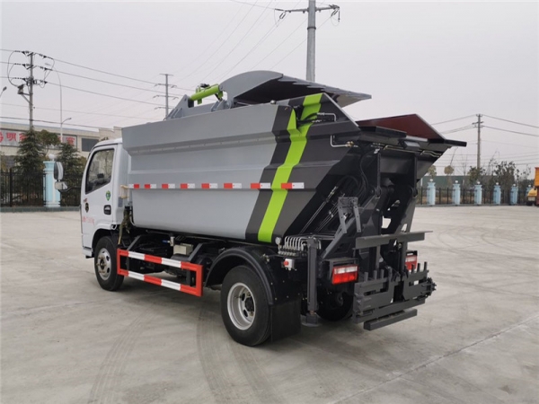 該車型是我公司根據環衛市場需求開發的一種新型垃圾車,選用東風公司生產的二類汽車底盤。由垃圾箱、翻桶機構、舉升機構、刮板及滑板壓縮機構、液壓系統和電氣系統等部件組成。具有外形美觀、駕駛舒適、操縱方便、機動靈活、可靠性高、運營成本低、上料效率高等特點。適用于城市、鄉鎮的垃圾收集轉運,箱體采用船型斗結構,徹底解決了垃圾運輸過程中的污水滴漏等問題。